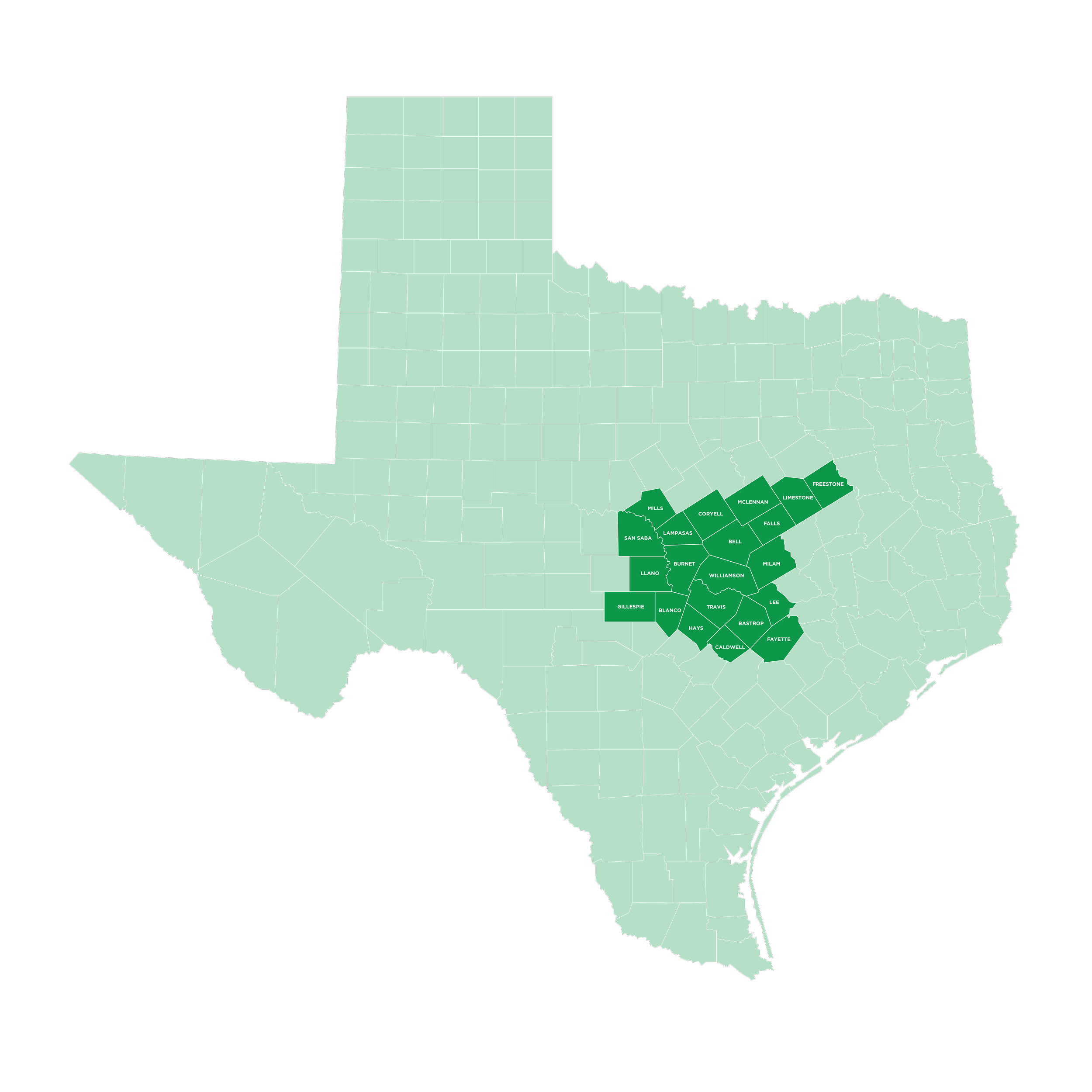The Council focuses on Central Texas Food Bank’s 21-county service area, which includes Bastrop, Bell, Blanco, Burnet, Caldwell, Coryell, Falls, Fayette, Freestone, Gillespie, Hays, Lampasas, Lee, Limestone, Llano, McLennan, Milam, Mills, San Saba, Travis, and Williamson counties.